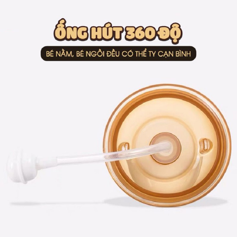 – Thiết kế ống hút silicon gắn bi trọng lực xoay 360 độ kết hợp với van khí kép giúp bé bú được trong mọi tư thế, đồng thời ngăn trẻ nuốt không khí, chống tràn, ợ hơi, chướng bụng, nôn trớ hiệu quả.
