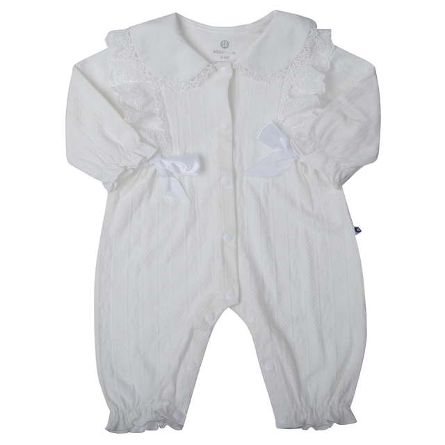 Bộ body dài tay bé gái KidsPlaza ren vải nơ HN25T (Trắng)