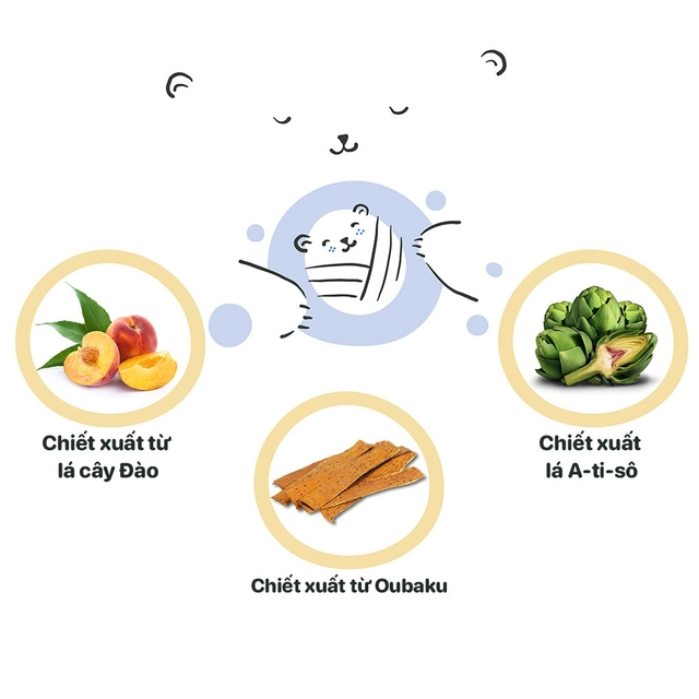 Thành phần ưu quý từ cây Hoàng Bách, chiết xuất lá đào và Atisô; bổ sung B8 & E